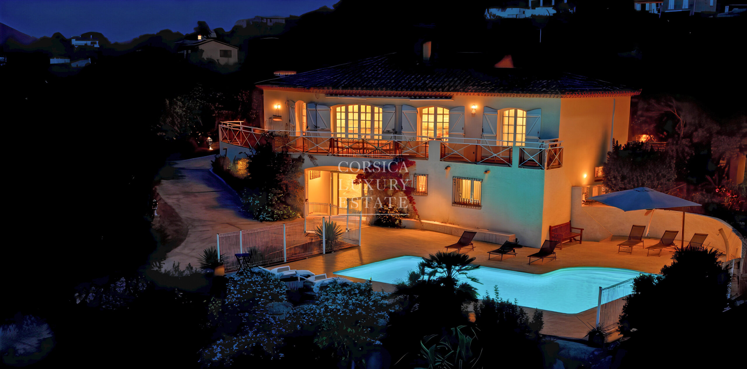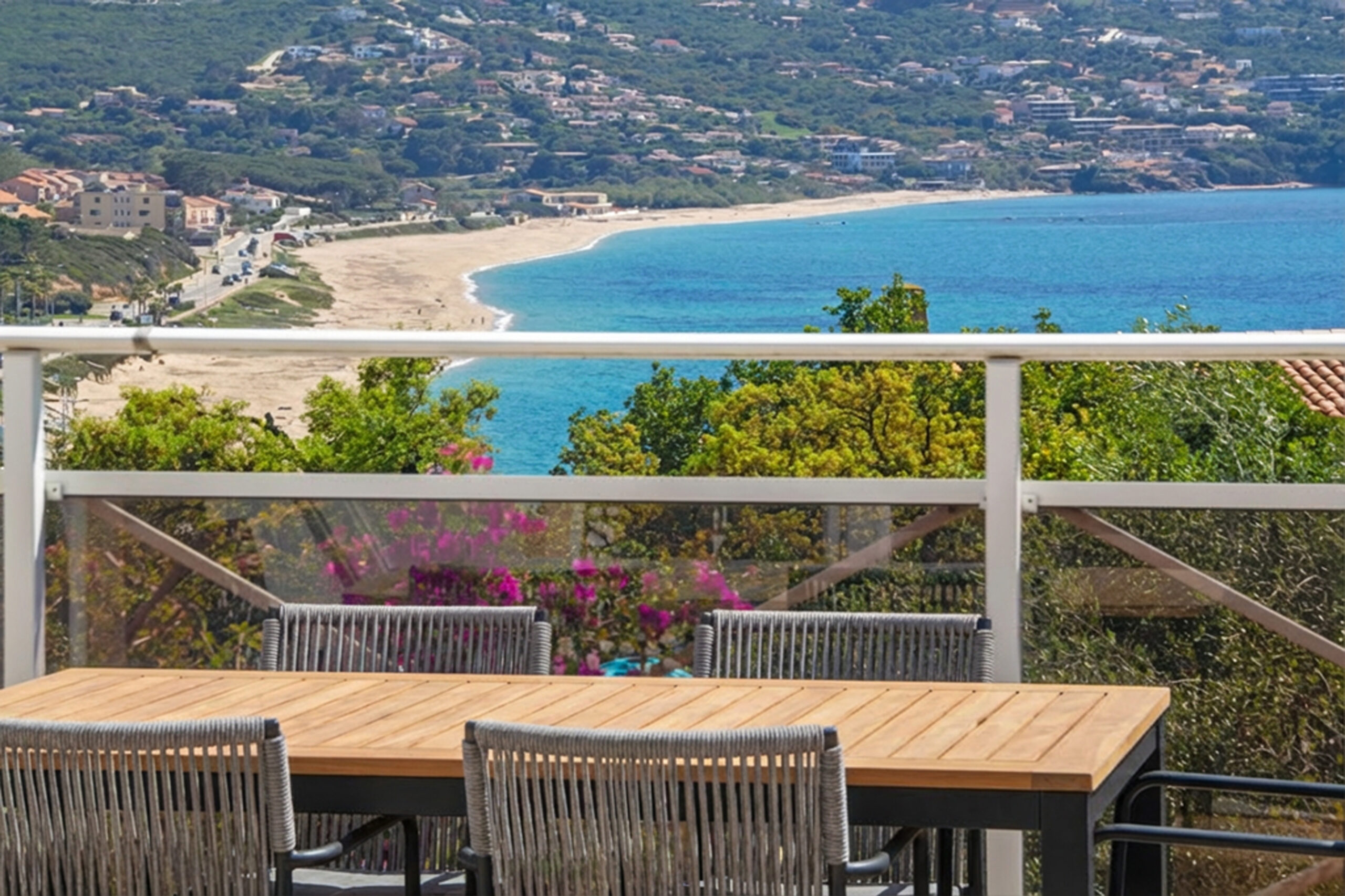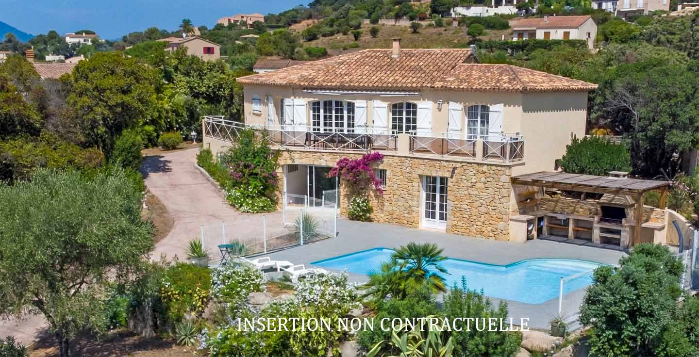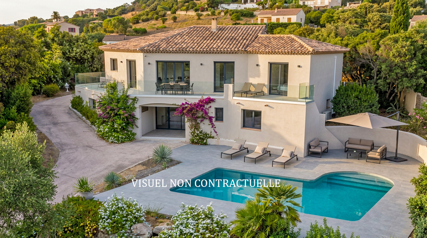Rive sud du golfe d'Ajaccio, villa contemporaine à vendre avec piscine et vue mer.