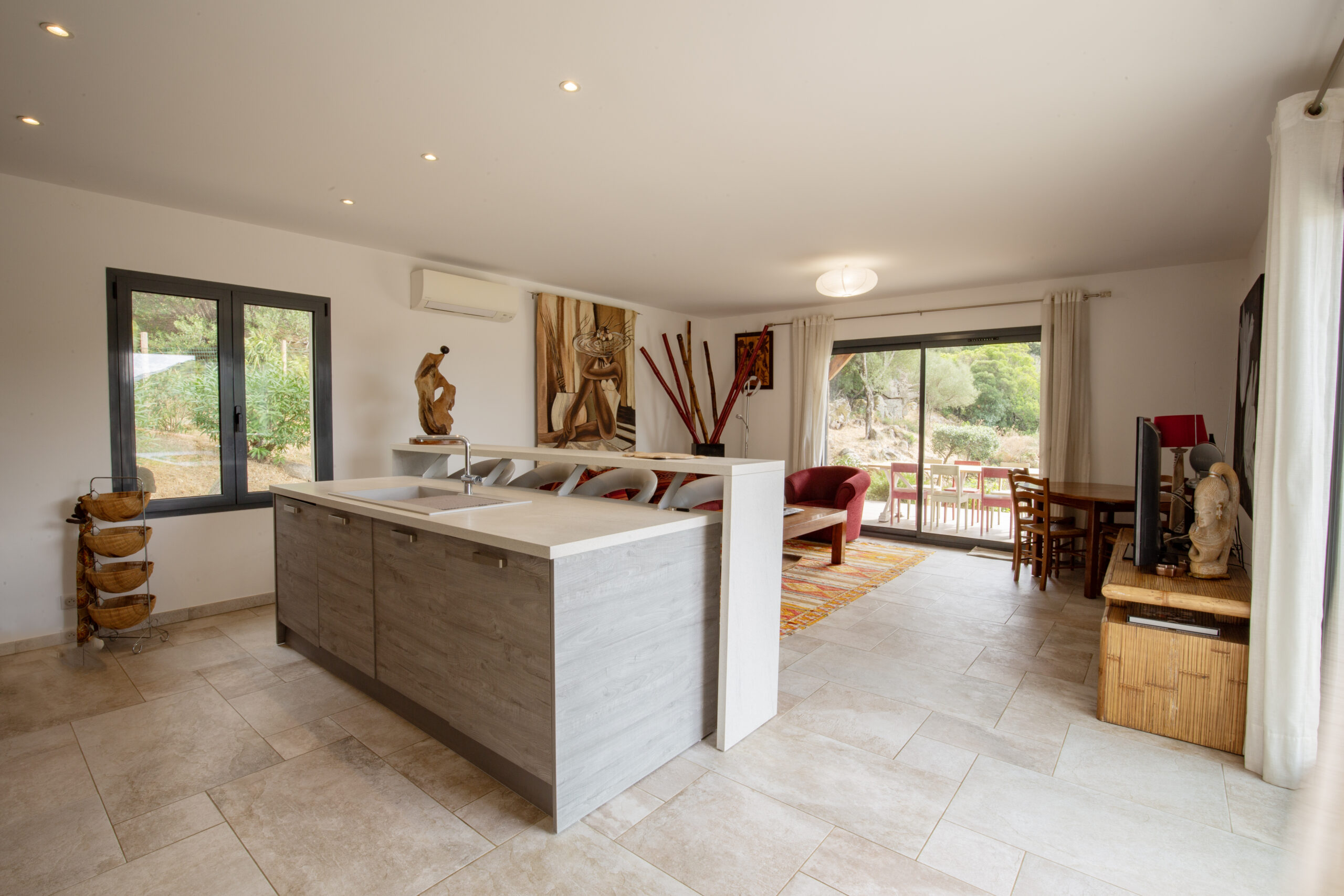 Un séjour avec cuisine ouverte