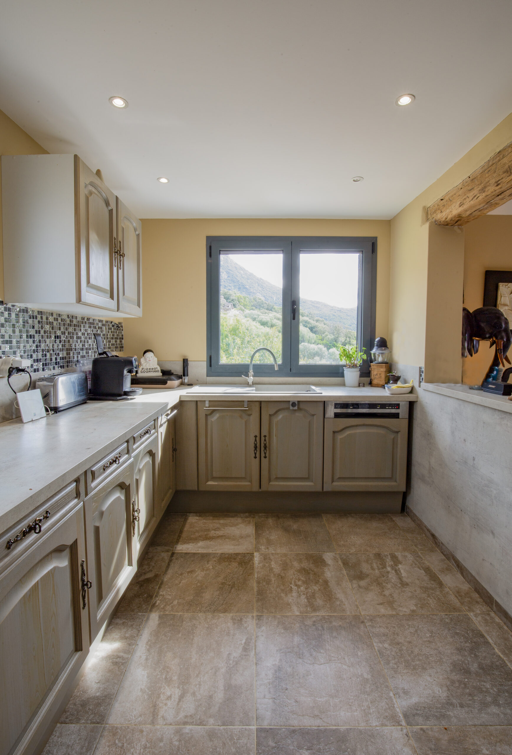 Une belle pièce à vivre lumineuse avec cuisine ouverte équipée, bénéficiant d’une exposition sud / ouest