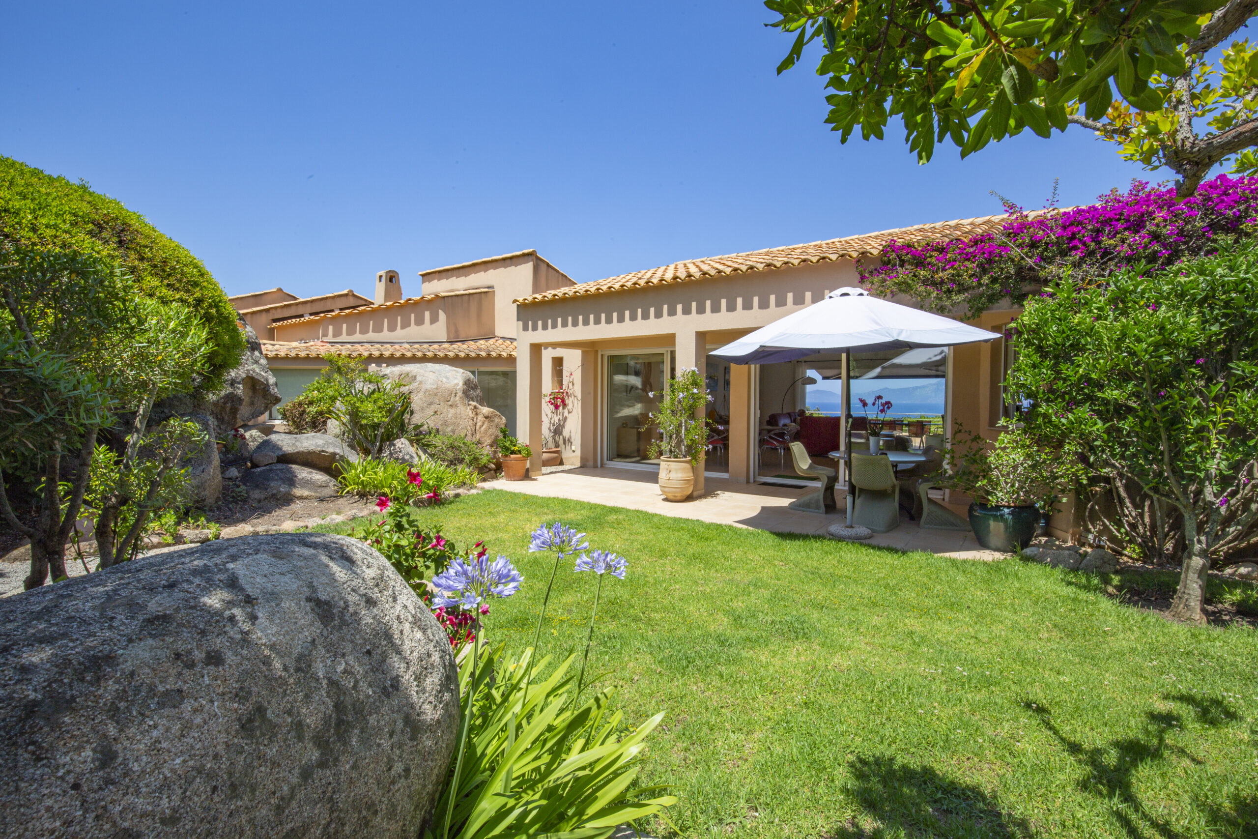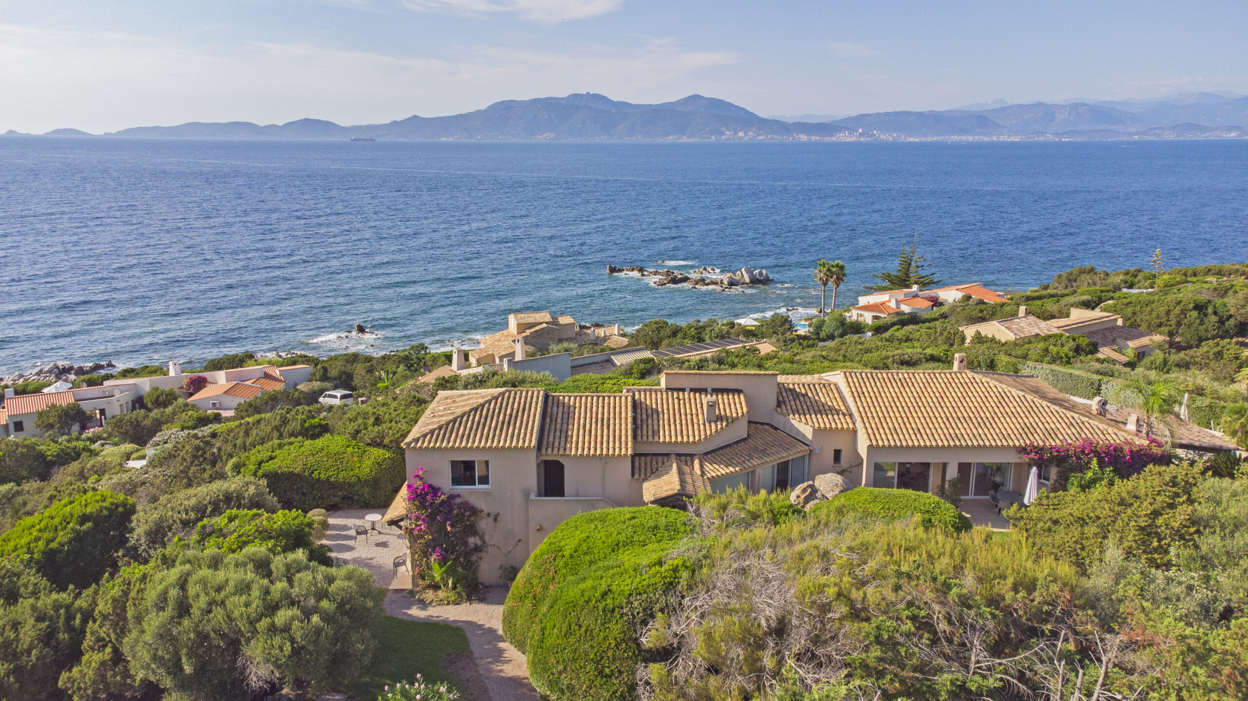 Enfin, cette villa à vendre à Coti-Chiavari avec vue mer, piscine et terrasses bénéficie d’une vue panoramique à 220°.