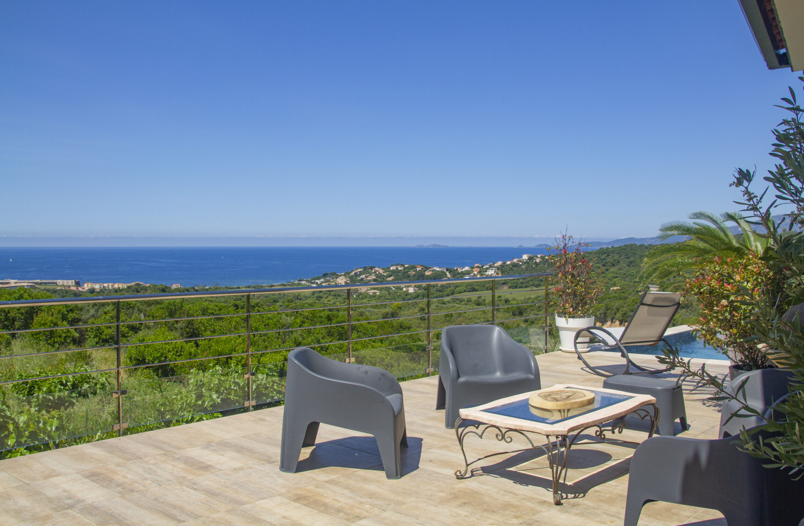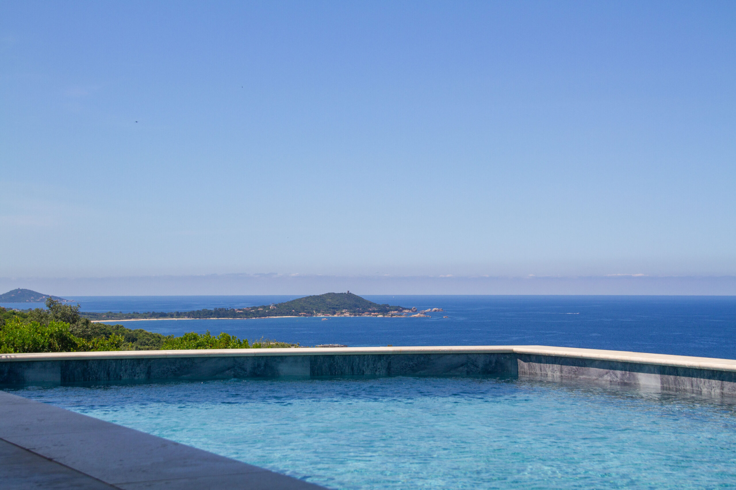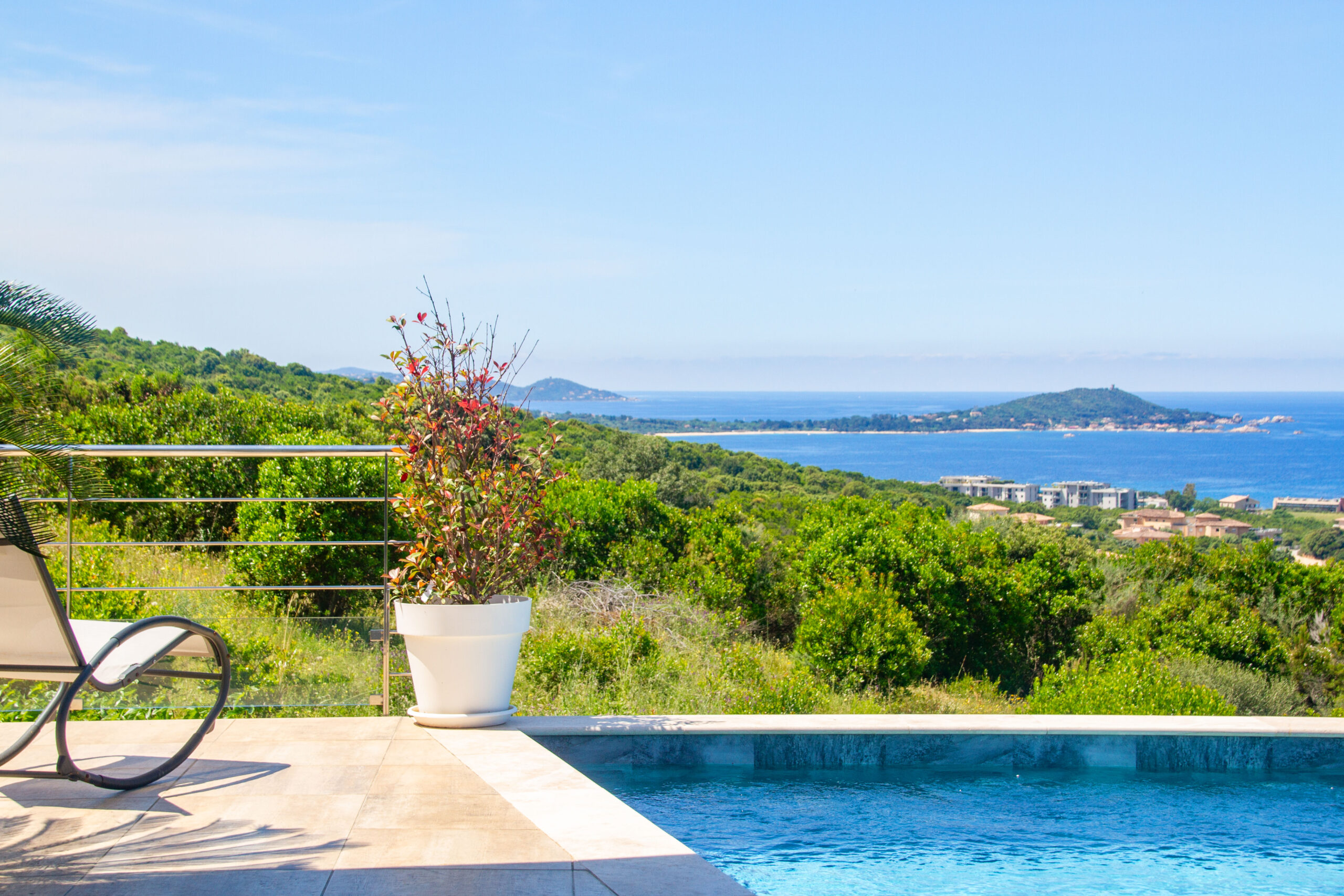 Rive sud du golfe d'Ajaccio, villa contemporaine à vendre avec piscine et vue mer.