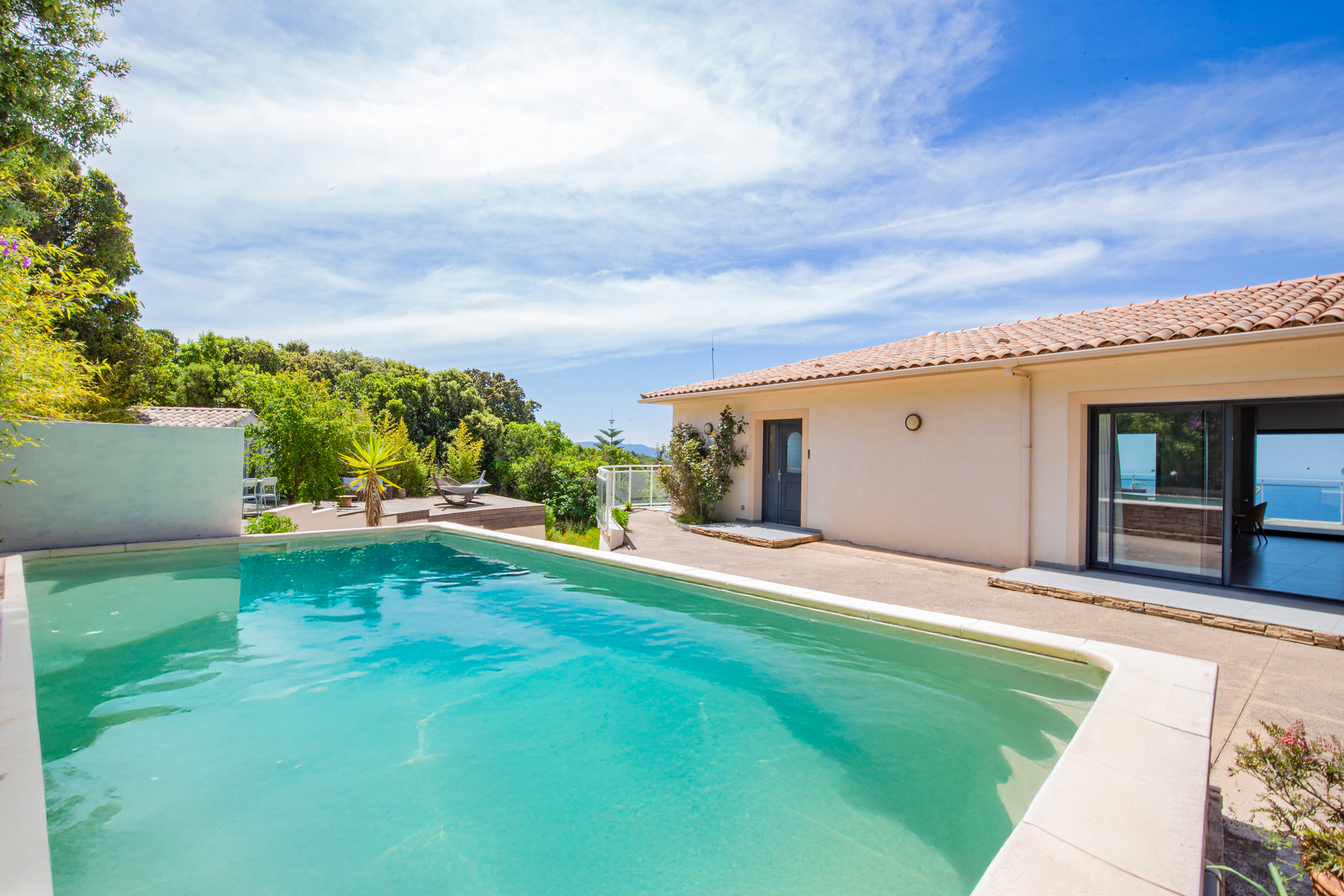 Rive sud du golfe d'Ajaccio, villa contemporaine à vendre avec piscine et vue mer.