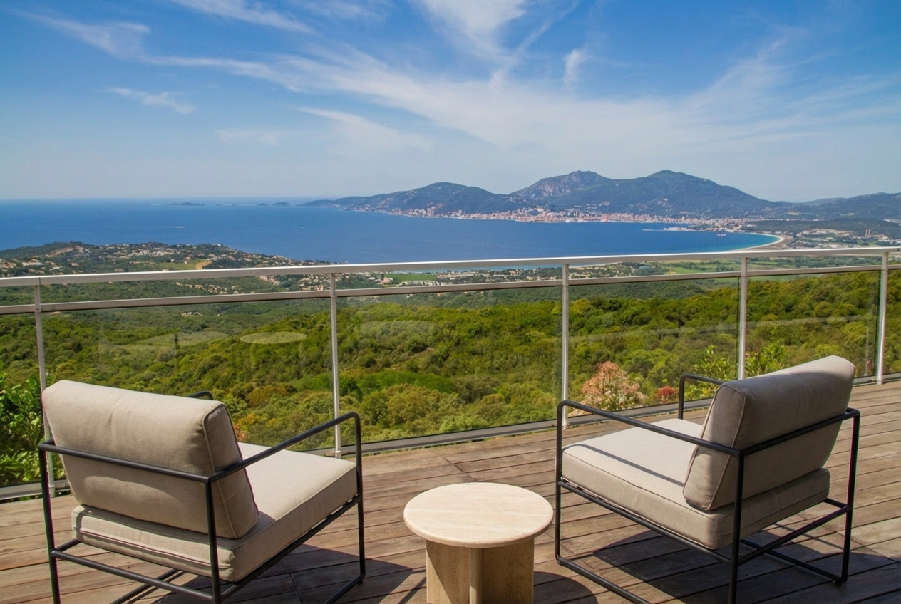 Villa contemporaine avec vue mer panoramique sur le Golfe d’Ajaccio à Zizoli : une adresse confidentielle, des volumes lumineux et un spectacle permanent sur la mer.